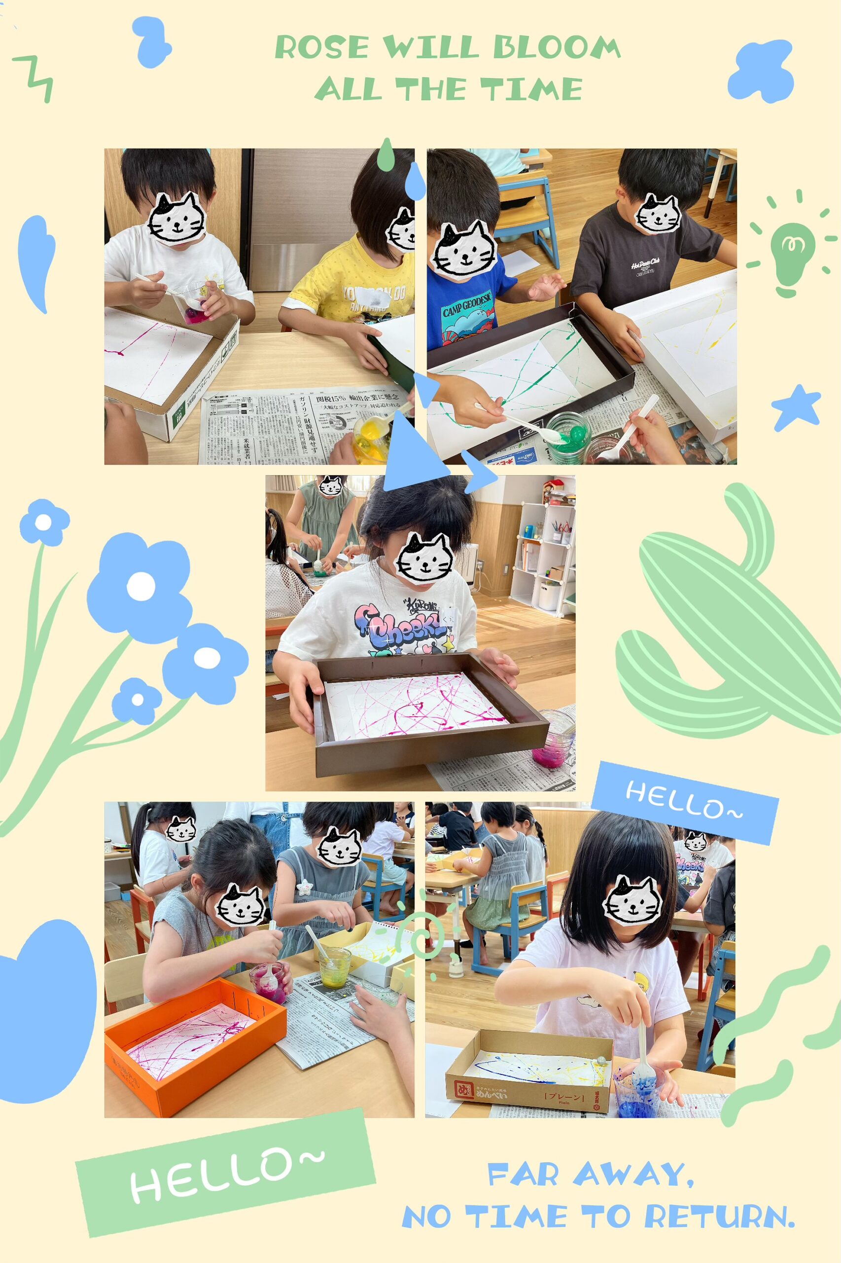 自由な発想と偶然が合わさったアート、子どもたちの感性が光っていました😊